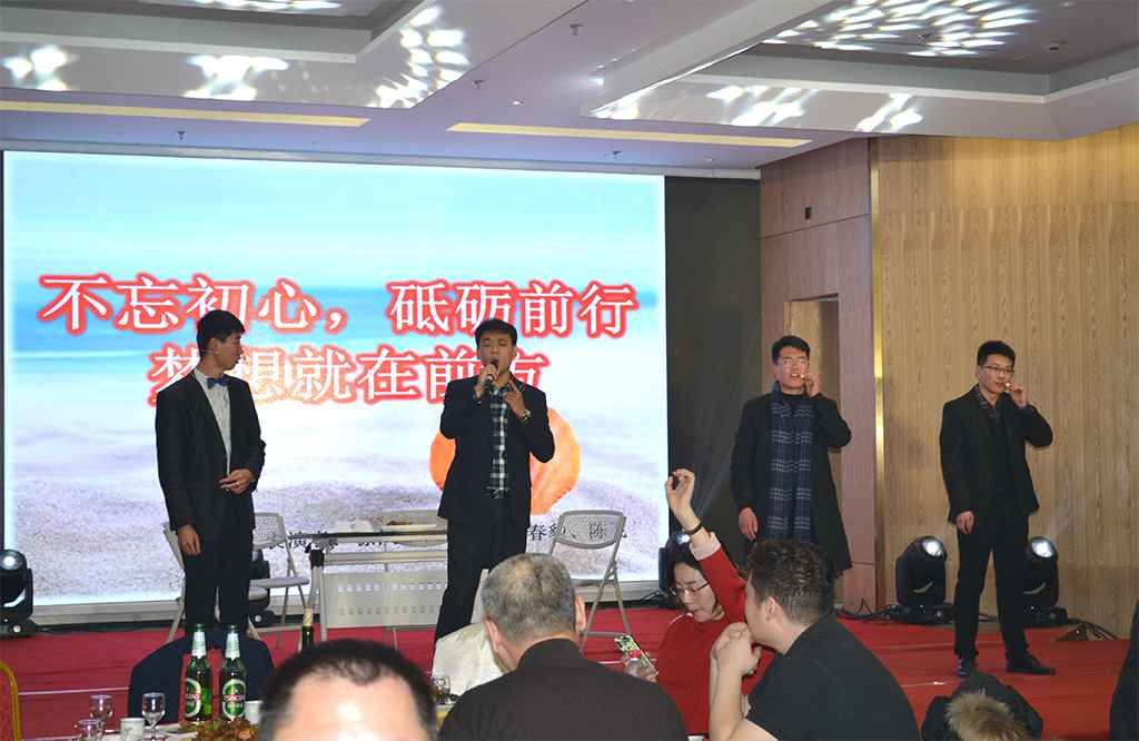 最后,氣勢磅礴的大合唱《真心英雄》,鏗鏘有力的歌聲,朝氣蓬勃的團隊,鮮活的將公司精神面貌展現(xiàn)在眾人面前,在演唱中年會接近了尾聲,公司領(lǐng)導及全體演員合影留念,伴隨著悠揚的歌聲,本次晚會在歡樂祥和的氛圍中圓滿結(jié)束。