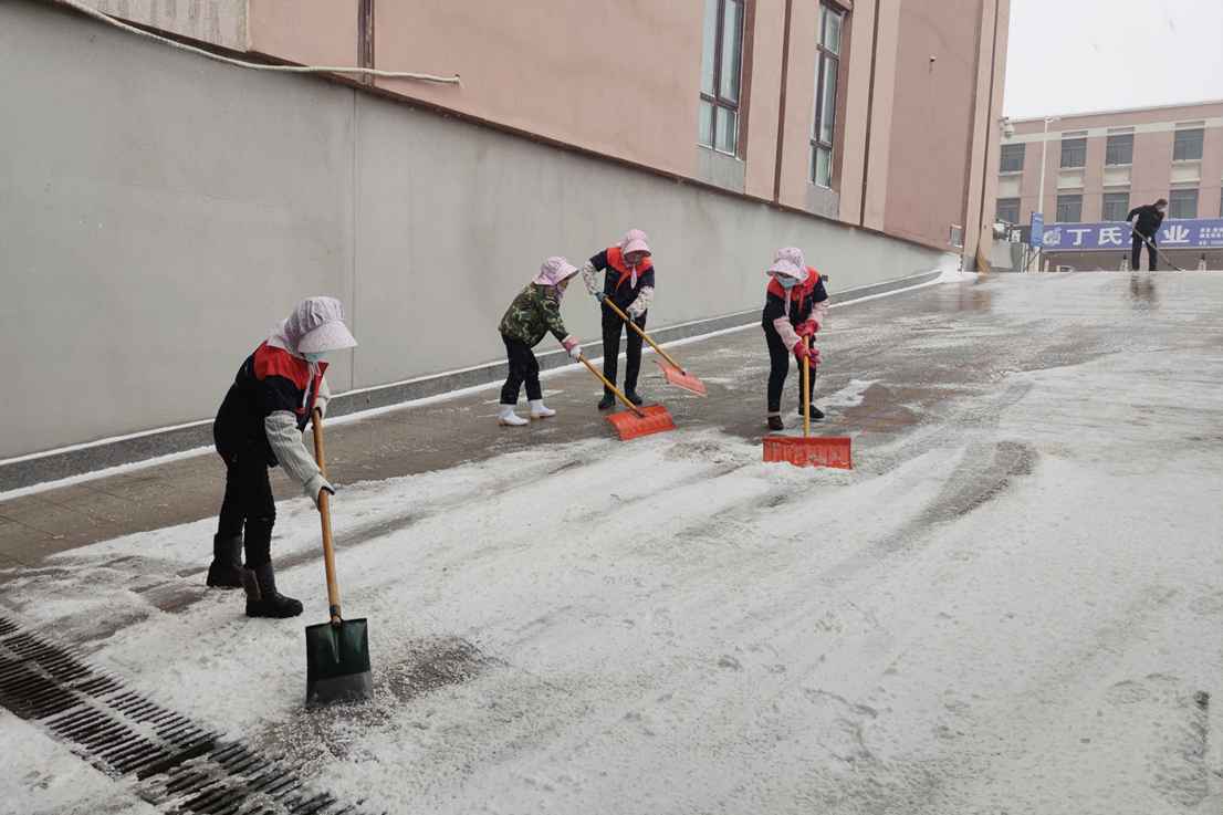 ▲防止道路結(jié)冰,工作人員加快速度鏟雪