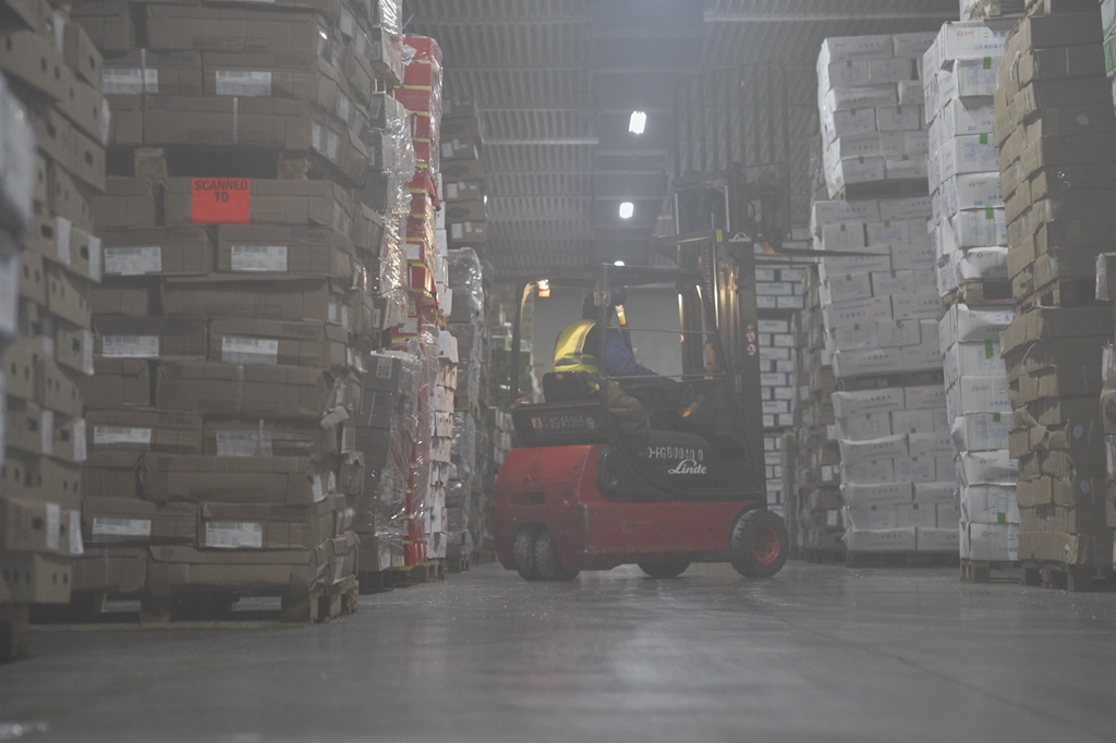 中凱智慧冷鏈物流園內(nèi)的中凱凍品云倉(cāng)是集倉(cāng)儲(chǔ)、管理、代發(fā)貨、售后處理的一站式服務(wù)。云倉(cāng)內(nèi),分揀生產(chǎn)線上,工人和機(jī)械分工合作,忙著分揀、包裝、發(fā)貨。現(xiàn)場(chǎng)引進(jìn)智能化分揀系統(tǒng),可實(shí)現(xiàn)每小時(shí)分揀3000余個(gè)包裹。軟件系統(tǒng)也做了大升級(jí),更好地滿足了市場(chǎng)增量的需求。